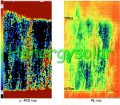 發光的強度與本位置的非平衡少數載流子的濃度成正比,而缺陷將是少數載流子的強復合中心,因此該區域的少數載流子濃度變小導致熒光效應減弱,在圖像上表現出來就成為暗色的點、線,或一定的區域,而在樣片內復合較少的區域則表現為比較亮的區域。因此,可通過觀察光致發光成像,來判斷樣片是否存在缺陷,雜質等等最終影響電池效率的因素。