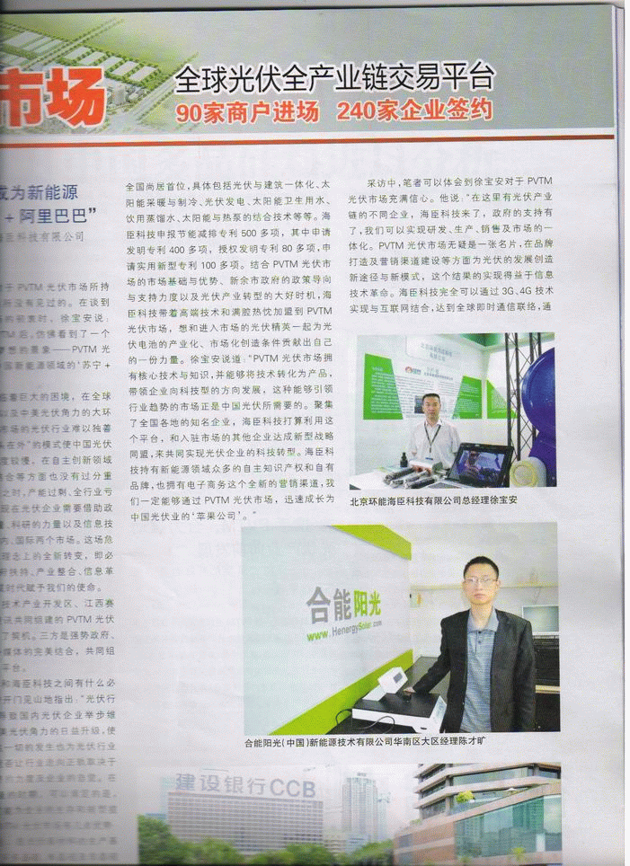 《光伏信息》:關于貴公司對PVTM光伏市場的發(fā)展期望?