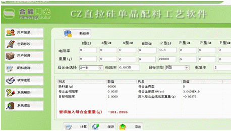 位于美麗的揚州,我公司一客戶自投資多晶硅項目以來,各方面都運轉正常,并且業務較上一年有遞增的趨勢,但是在實際拉晶車間,總能看見生產經理每次投料和摻雜的時候都是一頭汗水的在不停的計算著各種料摻雜的重量及比例,雖然最終的數據是準確的,但是每次都要耗費他大半個時辰,他整天夢想著,要是有一個按鈕,我只要一按就能出現我想要的各種比例,只要依照表中的比例配比,那么拉出來的棒一定是完美的成品。經過多方考證,應用我公司的摻雜配料工藝軟件后將復雜的程序變得簡單化,真正做到一點按鈕就能得到你想要的數據。使得生產效率、工作效率大大提高。