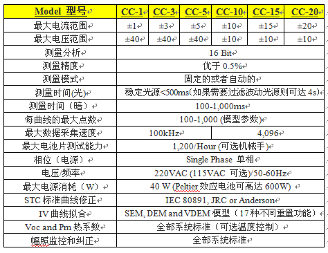 ■ 測試條件標準(STC)曲線修正程序符合IEC60891,Anderson和Blaessar或者用戶定義的條件